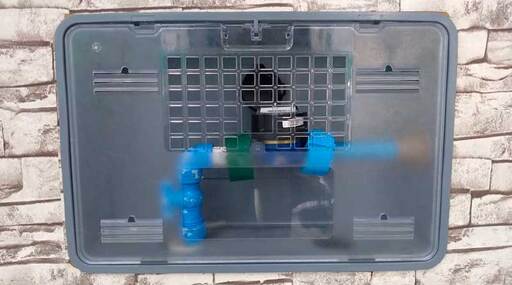 De acordo com as normas vigentes, a caixa padrão deve ser instalada de forma embutida no muro da residência ou em uma mureta, nos casos em que a casa não é murada. O modelo é composto por uma caixa em policarbonato, onde o hidrômetro é instalado com conexões em PVC.