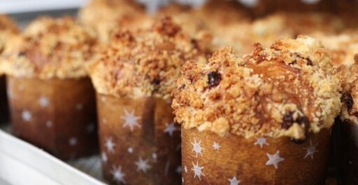 Para o recheio, são usadas gotas de chocolate ou frutas cristalizadas hidratadas, enquanto as raspas de laranja dão o aroma. Depois de ir para a forma de panetone, vem o toque mais que especial: a farofa típica do chineque. Por fim, vai para o forno e, quando sai de lá, é impossível resistir.
