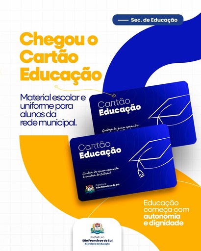 O benefício é destinado a todos os estudantes matriculados do pré ao 9º ano do ensino fundamental e permitirá a compra de uniformes escolares e do kit de material didático. O Cartão Educação será disponibilizado por meio de um aplicativo, oferecendo mais praticidade e autonomia às famílias, além de assegurar o uso correto dos recursos públicos.