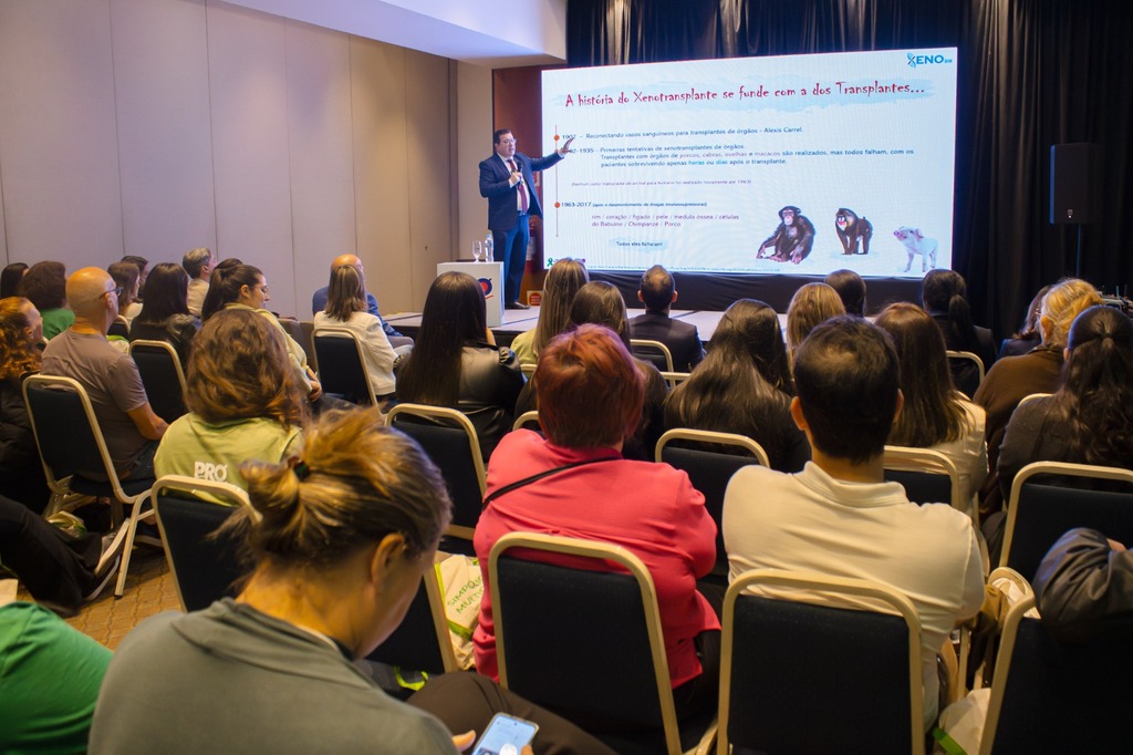 A palestra mais esperada do dia foi “Xenotransplantes – o futuro do transplante de órgãos”, com Tadeu Thomé, enfermeiro formado pela PUC SP, especialista em gestão em saúde pelo INSPER, mestre em Ciências da Saúde pela Unifesp. Atualmente ele é CEO da XenoBrasil Biotecnologia Avançada, ligada à USP; e representa da ABTO – Associação Brasileira de Transplante de Órgãos.