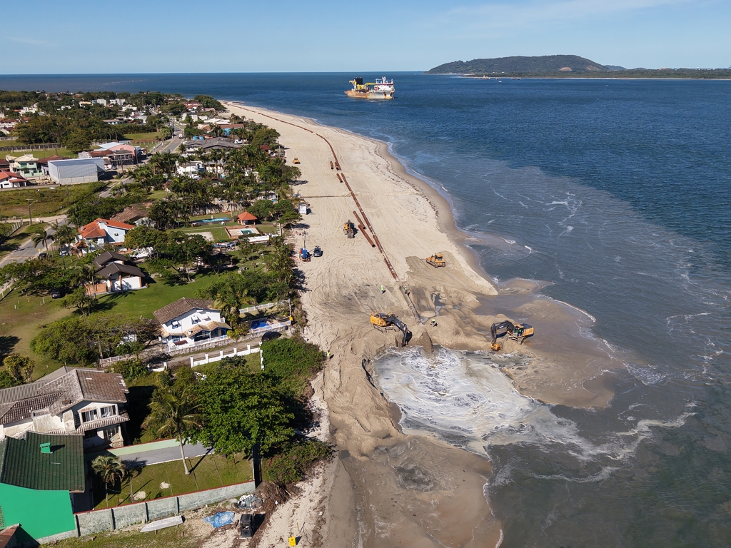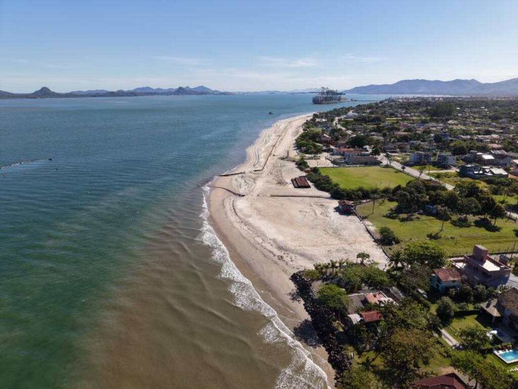 Parte dos sedimentos dragados está sendo utilizada para o engordamento de 8 quilômetros da Praia de Itapoá, ao lado do canal, no que é considerada a maior obra de engordamento de praia da história do país, em extensão. Os trabalhos têm previsão de conclusão para o segundo semestre de 2026.