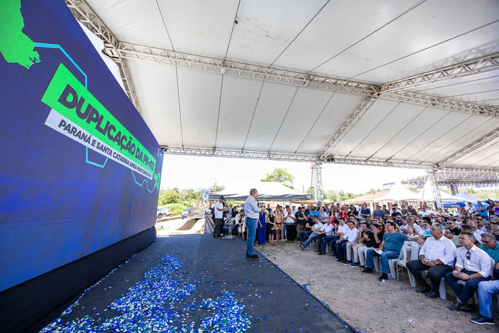 “Estava já no meu cronograma fazer a duplicação de Garuva no trecho Paraná. Como surgiu essa questão da dívida do Estado do Paraná, onde Santa Catarina ganhou na Justiça, o Paraná ia pagar isso daqui a 10 anos, possivelmente, como precatório. E numa conversa entre mim e Jorginho, eu falei ‘posso antecipar o pagamento disso e beneficiar os dois estados juntos. Vamos unificar os projetos e vamos resolver esse negócio logo para atender a população de Garuva e a população de Guaratuba’. E deu certo, a nossa maturidade política, nossa visão de futuro, de inovação, foi o que valeu”, disse o governador do Paraná.